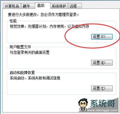2、选择系统,点击高级设置,在性能选择里点击设置。
