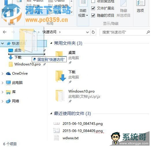 2、不用管它,拖动到想要改变顺序的位置,例如“下载”文件夹的上面,松开鼠标左键或抬起手指(触控操作),这时你会发现,Windows.pro文 件夹已经跑到“下载”文件夹前面了,不光是左侧导航窗格中的“快速访问”排序,而且右侧窗口中的“常用文件夹”排序也同时发生变化了。如图: