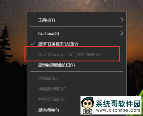 然后我们就可以看到显示windows ink 工作区按钮变成灰色的了,这就说明这个功能被关闭了。