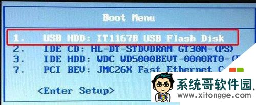 将大白菜u盘插入电脑,重启按f9进入启动项选择菜单,选择“usb”开头的选项按回车。如下图所示: