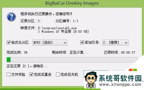 接着确认执行还原并耐心等待还原过程。如下图所示: