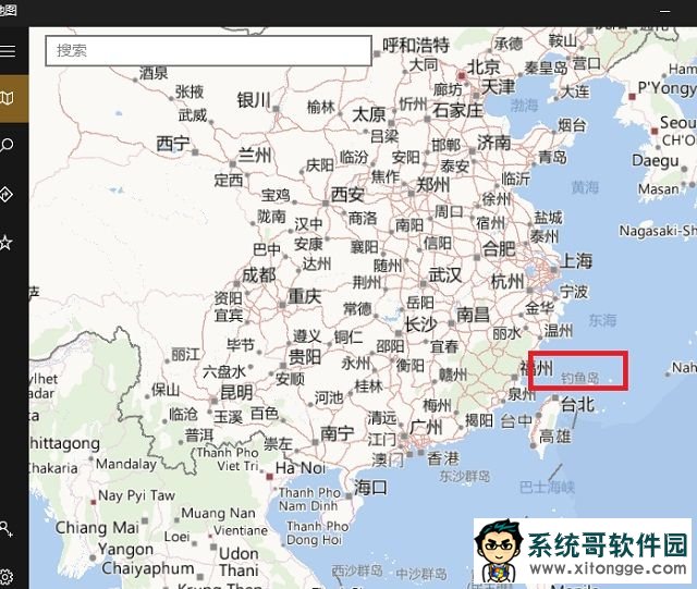 最后笔者找到钓鱼岛在中国的版图上,如下图所示。