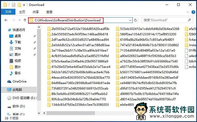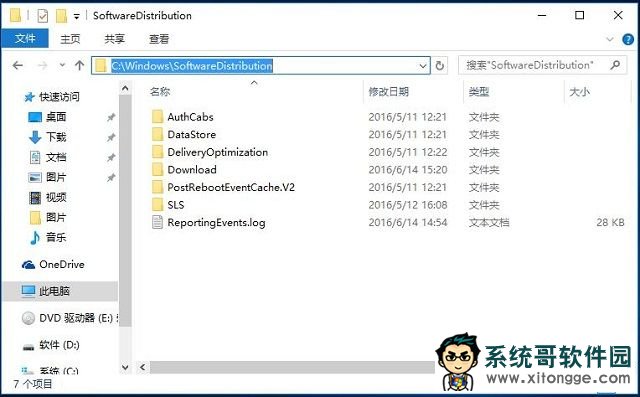 02.找到以下路径:C:\Windows\SoftwareDistribution(或在地址栏直接输入:SoftwareDistribution回车),如图所示。
