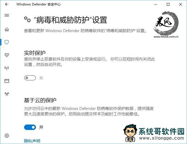 不管你用的是哪个版本的Win10,其实只要停了Windows Defender的实时监控,也就等于让这款内置杀软“离职”,至少是被架空了。所以,在创意者更新中,进入Windows Defender安全中心,找到“病毒和威胁防护设置”,把里面“实时保护”等选项关了就好。老版本Win10在设置→更新和安全→Windows Defender中关闭“实时保护”之类的开关就行。
