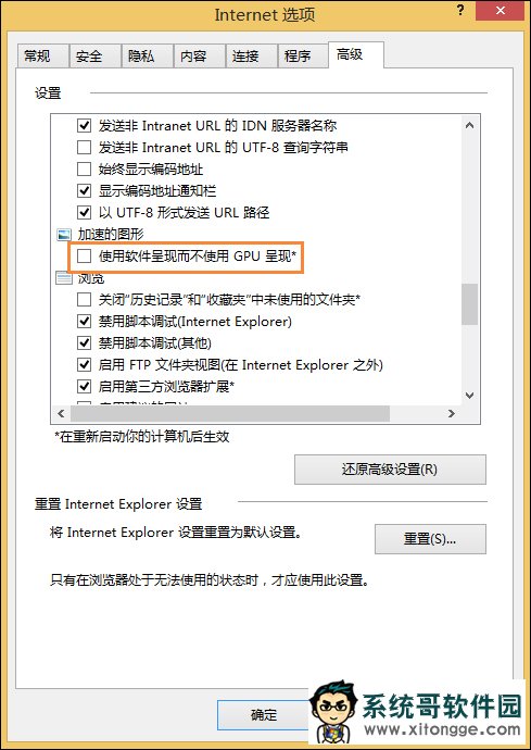 Win8 IE总是未响应怎么办?在Win8系统中的IE会因为“使用软件呈现而不是用GPU呈现”功能而无线陷入卡死、未响应状态,想要上网也只能暂时使用别的浏览器代替使用,若要解决该问题,可以参考下文进行操作。