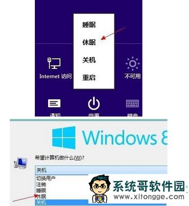 5、再次选择“电源”或者“Alt+F4”,已经正常显示休眠按钮,此时选择计算机已经可以正常休眠。