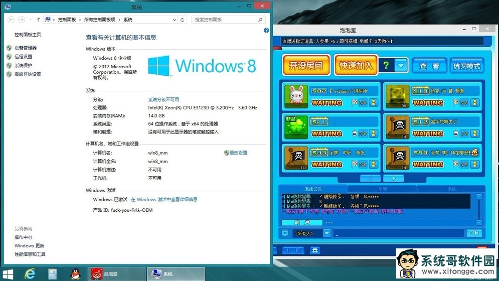 2、注销Windows8系统,结果果然成功了,所以总结一下只要玩泡泡堂之前(注销一下Windows8系统)就可以正常玩泡泡堂了。