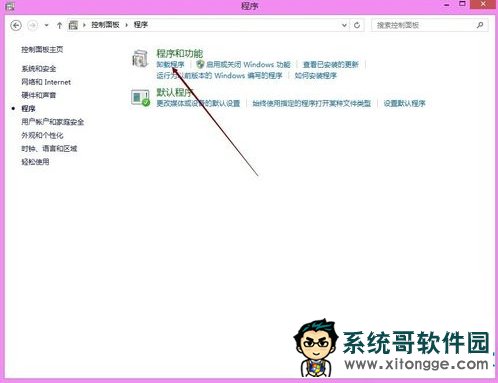 3、在程序窗口里,我们可以看到程序和功能,点击下方的卸载程序。