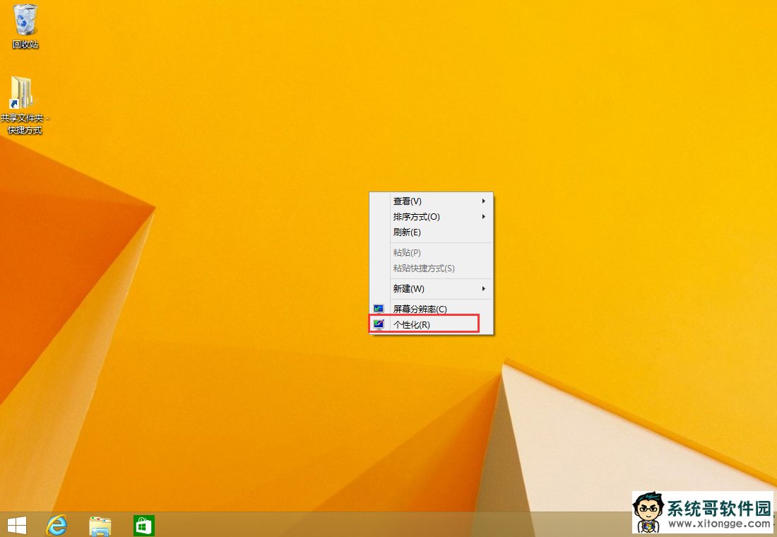 1、在Windows8系统中,通过鼠标右键点击桌面空白处,打开右键菜单,之后选择“个性化”。