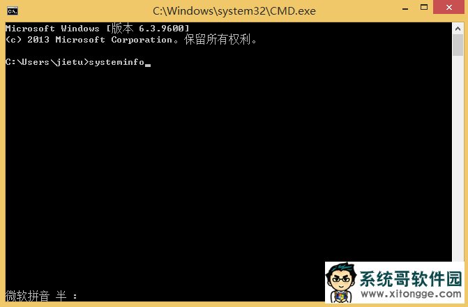 2、在管理员命令窗口中,输入“systeminfo”,按回车键。