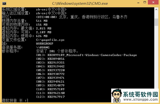 Win8怎么查看已安装的系统补丁信息教程就讲到这里了,方法很简单,我们只需要打开命令提示符,之后在里面输入systeminfo,最后回车即可看到已安装的系统补丁信息。