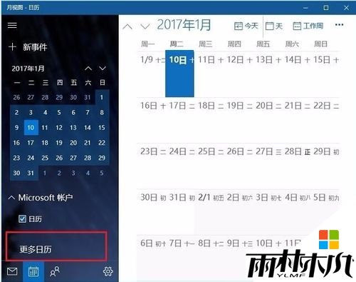 2、打开日历设置界面后,继续点击“更多日历”,如图所示。