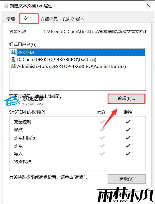 在 “属性” 窗口中,切换到 “安全” 选项卡,点击 “高级” 按钮。