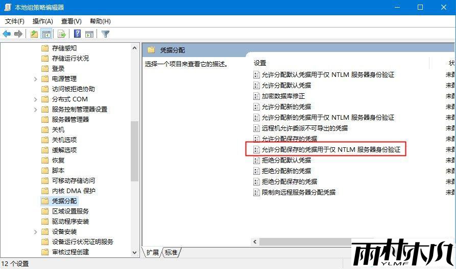 依次展开 “计算机配置”→“管理模板”→“系统”→“凭据分配”,双击 “允许分配保存的凭据用于仅 NTLM 服务器身份验证”,