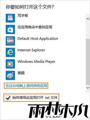 2、 点击“更多应用”,下拉到最下面,勾选“始终使用此应用打开.txt文件”,然后点击“在这台电脑上查找其他应用” ;