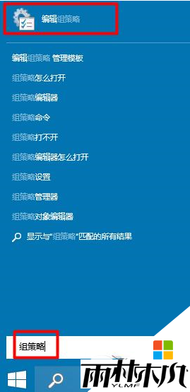 3、在搜索框中输入“组策略”,可以搜索到,我们直接点击;