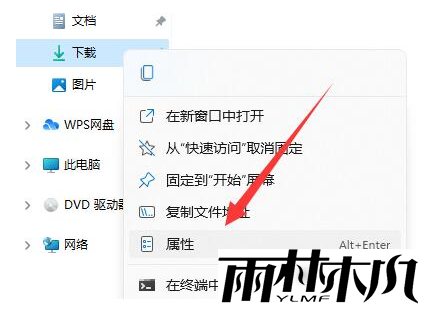 1、一般下载的文件都是保存到资源管理器中的“下载”文件夹中,因此我们先打开文件资源管理器,右键下载文件夹选择“属性”打开。