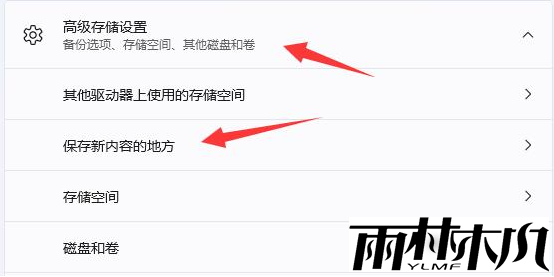 4、展开高级存储设置,然后选择“保存新内容的地方”。