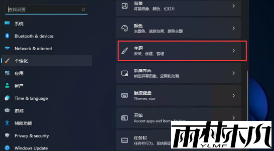2、接着就会进入到一个设置界面,在设置界面左侧找到主题功能。