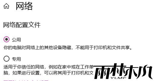 4、最后大家也可以将网络配置从“专用”改成“公用”即可。