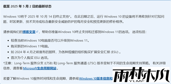 据雨林木风系统官网得到的最新消息,微软官方在更新Windows 11系统的最新情况的时候,还更新了Windows 10系统的最新状态,还很“暖心”的提醒用户,Windows 10系统将在2025年10月14日正式结束支持。麻叶!有很多小伙伴都还在使用WIN7旗舰版系统呢?这Win10系统又停更补丁,微软真的快啊!