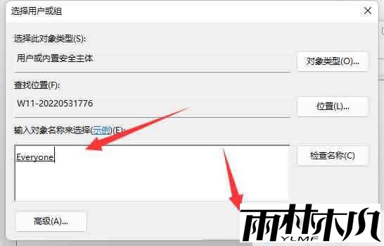 输入 “everyone” 后点击 “确定” 保存设置,即可获得修改权限。
