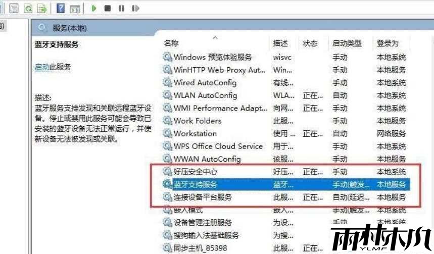找到 “蓝牙支持服务”,双击打开,若服务状态为已停止,则点击 “启动”,并将启动类型设置为 “自动”。