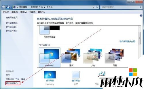 在个性化设置界面左下角,点击“轻松访问中心”,进入下一界面。