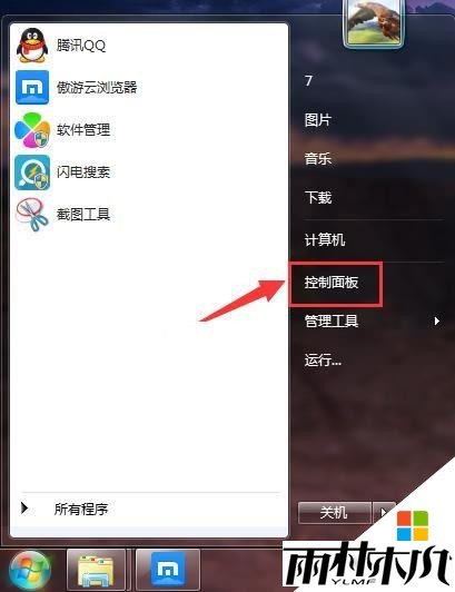1 鼠标点击“开始”菜单,单击“控制面板”;如图1所示