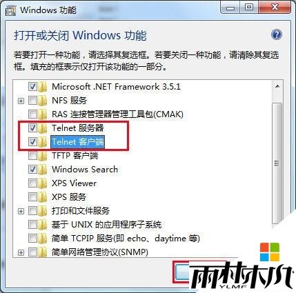 雨林木风 win7系统开启Telnet服务步骤:
