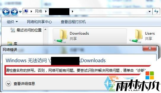 雨林木风win7旗舰版访问共享文件夹提示“请检查名称的拼写”