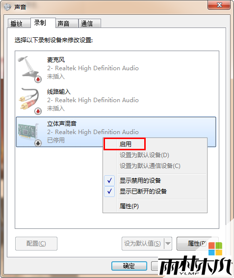 雨林木风 win7系统声卡没有“立体声混音”的解决方法