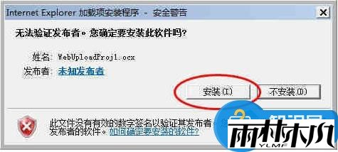 7、按F5刷新相应网站,再次安装相应ActiveX控件时,即会提示“无法验证发布者。您确定要安装此软件吗?”——单击“安装”。