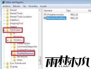 4、运行 regedit.exe 打开注册表编辑器,找到HKEY_LOCAL_MACHINESOFTWAREMicrosoftSQMClientWindowsDisabledSessions选项;