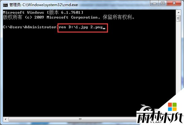 3、如果只想将某一类型文件(具有相同后缀名)修改为另一个类型,比如,将D盘中的所有jpg文件后缀修改为png,其命令为: