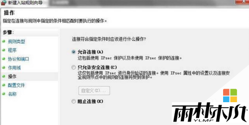 点击左侧的“操作”,然后选择“允许连接”;