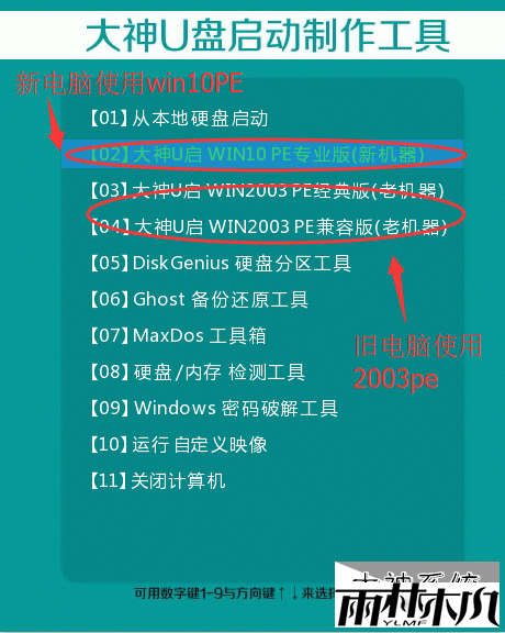 3、在大神主菜单界面用键盘方向键“↓”将光标移至“【02】大神Win8PE标准版(新机器)”,回车确定,如图所示;