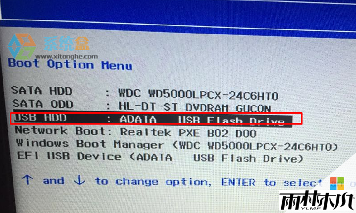 5、选择U盘启动(USB HDD XXXX)然后就可以进入U盘启动盘菜界面了!