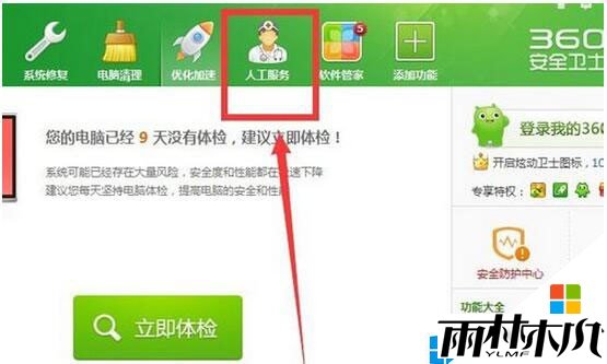 1、下载安装了360安全卫士,然后打开它,点击人工服务。如图: