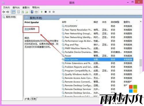 如果在找到的Win8.1打印机服务已经关闭了,此时我们可以直接点击启动此服务来开启打印机服务,如下图所示。