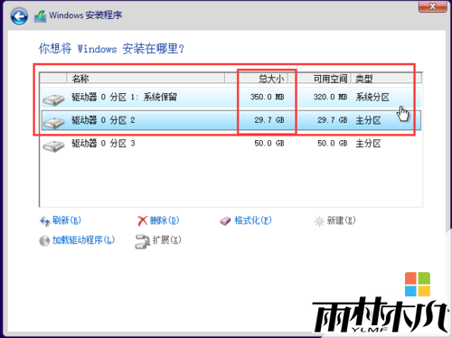 我的情况:前面一个系统保留分区,一个系统盘分区。红线标出来的。我先把这两个删除了,然后再创建一个分区,这样就会出现一个系统保留分区及系统分区。 选择系统分区,往下继续安装即可。