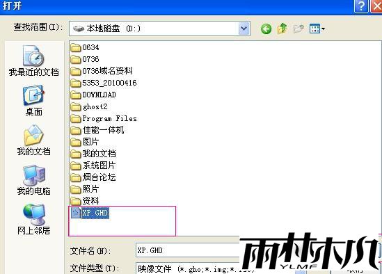 6.选中标红的解压出来的XP.GHO,再点打开。如下图。